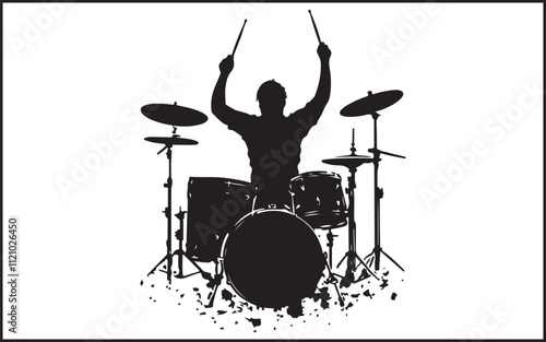 © ABU SAYED, Fototapeta premium music silhouette of a person with drums