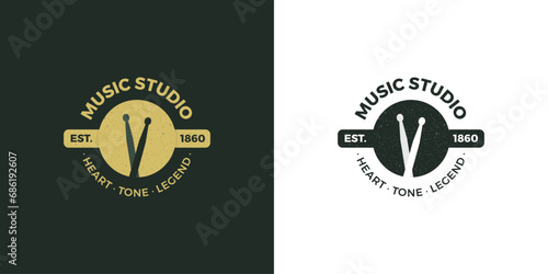 Fototapeta premium Music Studio Guitar Store Grunge Logo Artwork