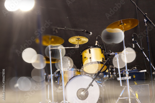 Naklejka premium Musica en directo.Bateria sobre el escenario y concierto