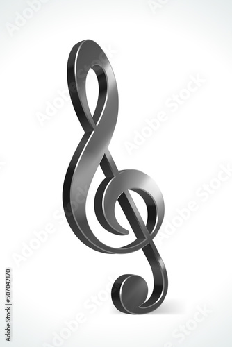 Fototapeta premium Musical 3d note vector. Melodic treble clef is symbol of steel gray color an...