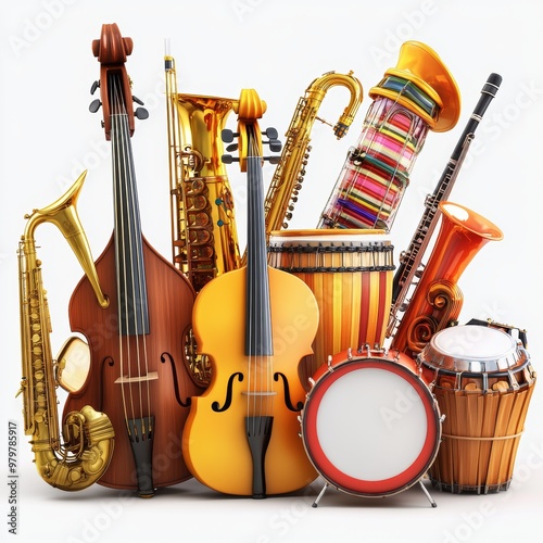 Naklejka premium Musical Instruments Drums Saxophone Violin Bass Clarinet Band Orchestra Music Ins