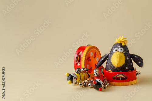 © Andrey Cherkasov, Naklejka premium Musical instruments on beige background