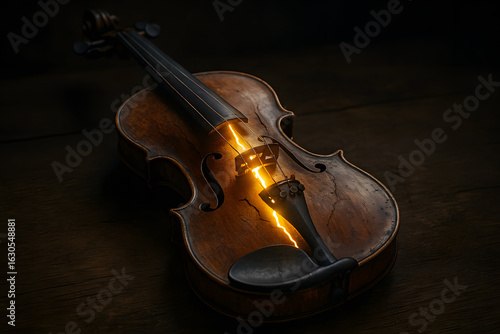 Fototapeta premium Musical Luminescence: A classical violin, illuminated from within, radiates a...