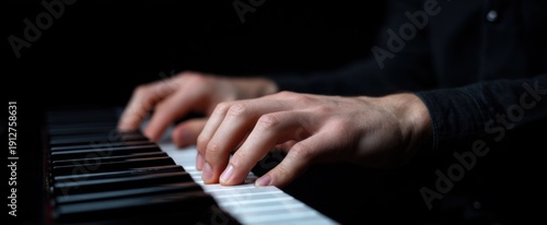 © ckybe, Obraz premium musician dances on piano keys like a butterfly on a spring breeze