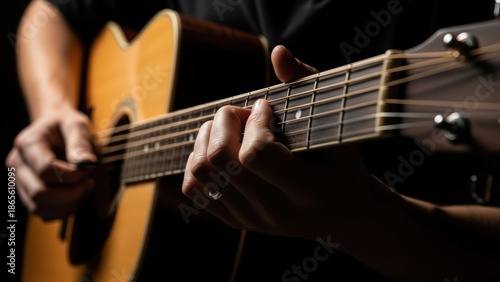 Fototapeta premium Musician playing acoustic guitar fingerpicking