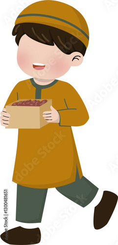 Naklejka premium Muslim boy sharing dates fruit for Eid Al fitr