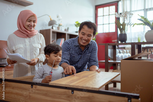© Odua Images, Fototapeta premium muslim family and son assembling new furniture