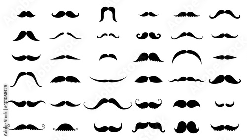 Fototapeta premium Mustache collection. Black silhouette of the mustache set isolated on white....