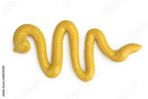 Obraz premium Mustard sauce isolated on white background. Top view. Flat lay