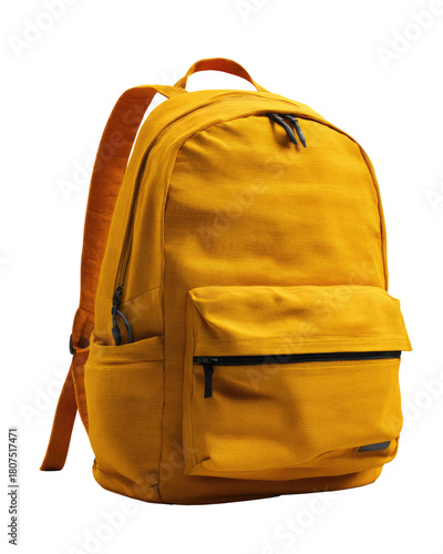 © adri, Fototapeta premium Mustard-yellow backpack with zippered pockets
