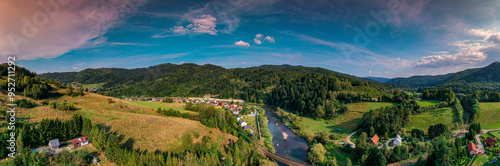 Fototapeta premium Muszyna, Dolina Popradu, lato widok z powietrza.