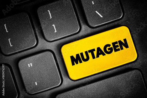 © dizain, Naklejka premium Mutagen - anything that causes a mutation (a change in the DNA of a cell), text button on keyboard, concept background
