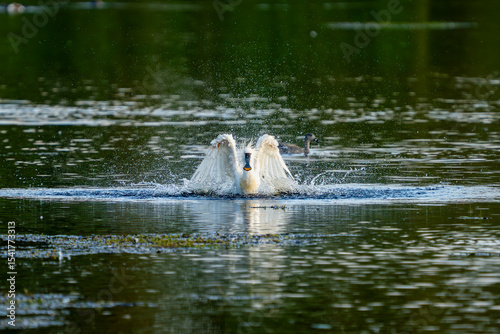 © erenalkis, Fototapeta premium Mute Swan Making Splash in Lake During Aggressive Display