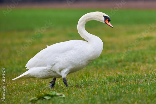 © Adrian , Naklejka premium Mute swan on a meadow (Cygnus olor)