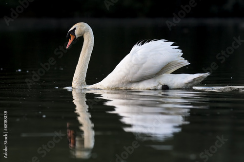 © Sander Meertins, Fototapeta premium Mute swan on black