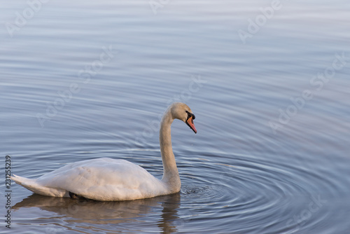 Obraz premium Mute swan on lake looking at reflection in water