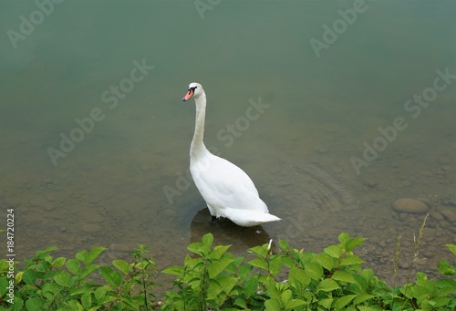 Fototapeta premium Mute swan standing in the Drava river