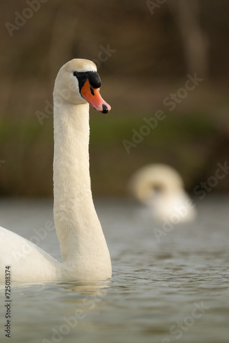 Fototapeta premium Mute swan swimming focus on long neck