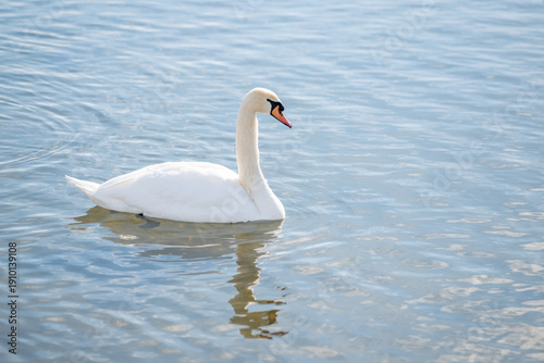 Obraz premium Mute Swan swimming on calm cold wintery water