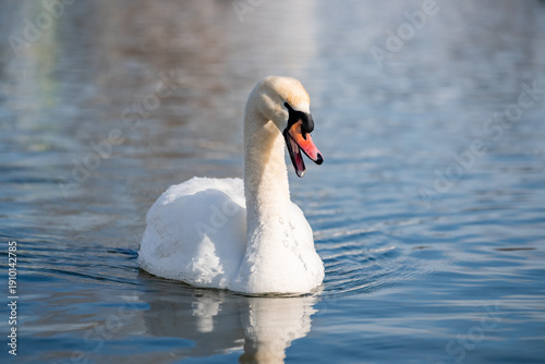 Obraz premium Mute Swan swimming on calm cold wintery water