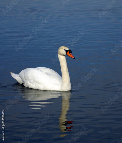 © Dennis Donohue, Naklejka premium Mute Swans on Ice Covered Hudson River