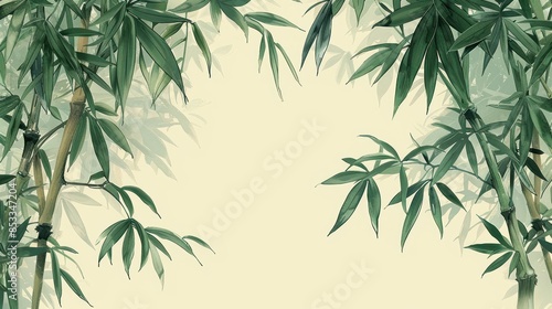 © Praphan, Fototapeta premium Muted green bamboo border with a flat design and repeating pattern.