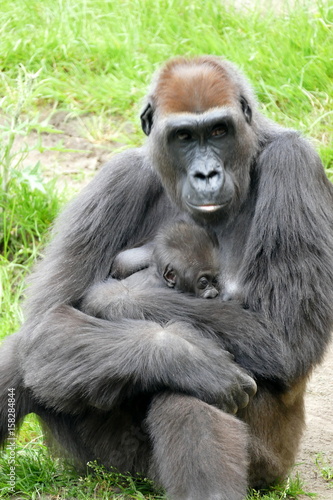 © Janjana, Obraz premium Mutter Gorilla mit Neugeborenem