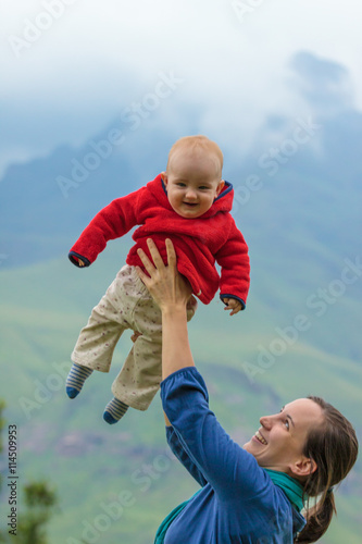 © mophoto, Fototapeta premium Mutter wirft Baby in die Luft