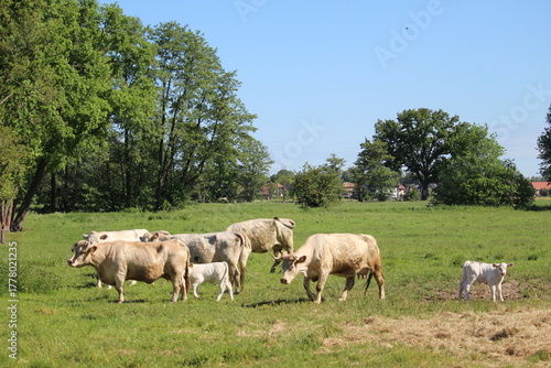 Obraz premium Mutterkuhherde auf der Weide mit Kälber