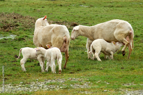© Otmar Smit, Obraz premium Muttertiere und Lämmer auf einem Feld