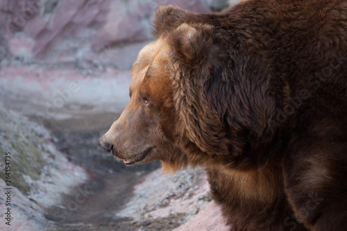 Obraz premium muzzle bear in profile. Huge powerful brown bear close-up, strong beast on a stone background,