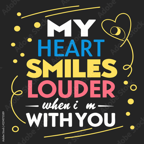 © Zahedul, Fototapeta premium My heart smiles louder when I’m with you typography t shirt design