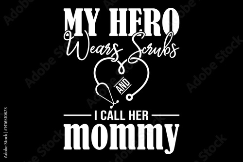 Naklejka premium My hero wears scrubs I call her mommy svg nurse quotes typography t-shirt...