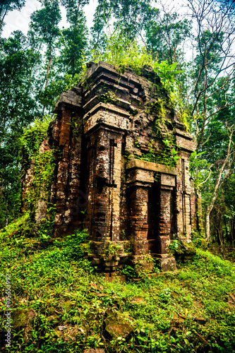 Naklejka premium My Son, Ancient Hindu tamples of Cham culture in Vietnam near the cities of Hoi An and Da Nang.