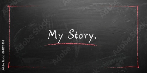 © The 2R Artificiality, Naklejka premium My story on black chalk background, personal narrative for editorial header use