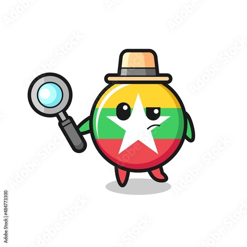 © heriyusuf, Fototapeta premium myanmar flag detective character is analyzing a case