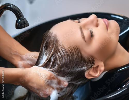 Fototapeta premium Mycie włosów na myjce u fryzjera