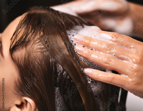 © Monika Janiak-Klicha, Fototapeta premium Mycie włosów szamponem do włosów