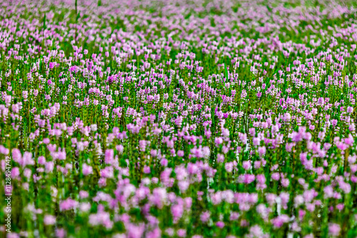 © MinBaMyaing, Naklejka premium Myriophyllum aquaticum or parrotfeather watermilfoil in Burma has beautiful pink and purple flowers.