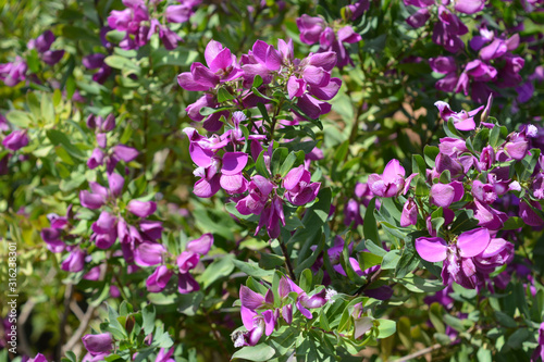 Fototapeta premium Myrtle leaf milkwort flower, also known as Polygala myrtifolia, blooming in a garden in spring