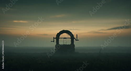 © Saiful Islam Wasif, Fototapeta premium Mysterious Ancient Well Stands Isolated in a Dense Twilight Fog, Evoking a Sense of Forgotten History and Ethereal Calm at Dusk