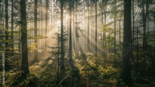 © Nicolai, Obraz premium mysterious and enchanting scene of a dense forest at dawn