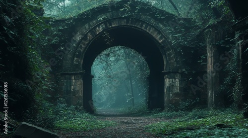 © QITIAN, Obraz premium Mysterious archway in an overgrown forest, creating an enchanting atmosphere.