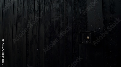 © Shehub, Fototapeta premium Mysterious Black Wooden Wall with Camera Lens