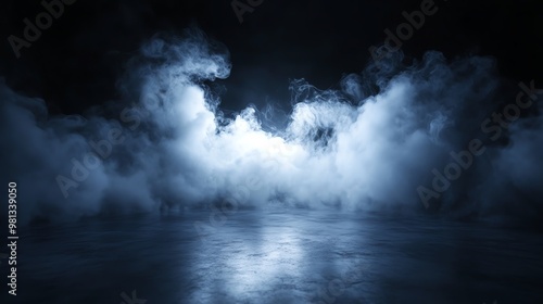 Obraz premium Mysterious blue fog envelops a dark scene, creating an ethereal mood perfect...