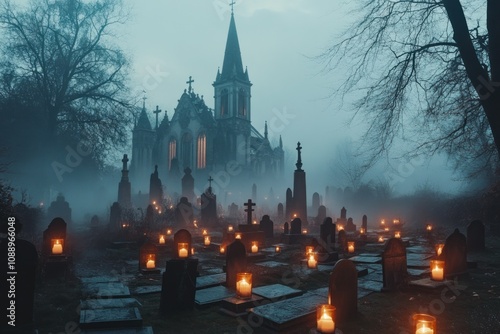 Obraz premium Mysterious Cemetery with Lanterns at Dusk