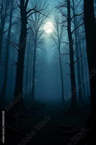 Fototapeta premium Mysterious Dark Forest Under Moonlight