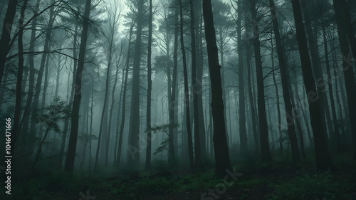 Obraz premium Mysterious Dark Forest with Fog and Shadows