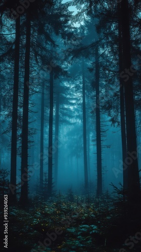 Fototapeta premium Mysterious Dark Forest with Foggy Atmosphere