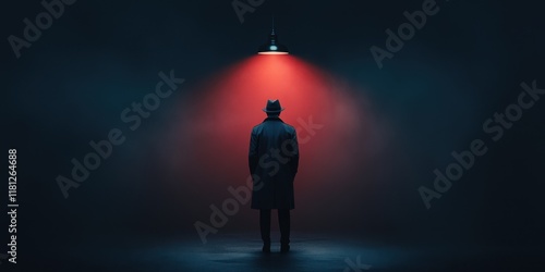 © Ms_Tali, Obraz premium Mysterious detective in shadowy street under flickering light - noir atmosphere